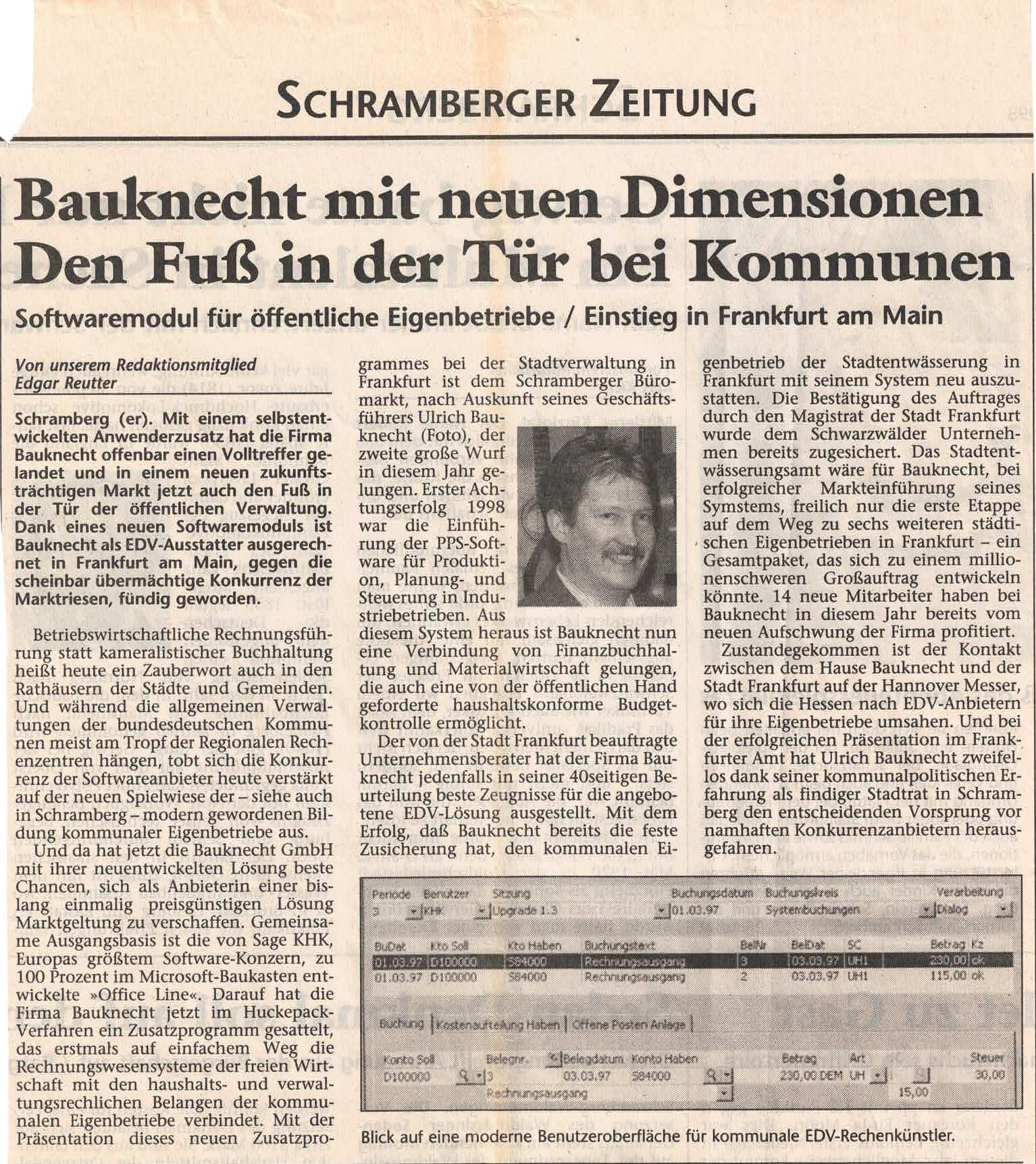 Ulrich Bauknecht verkaufte an die Firma Roth in Niedereschach seinen ersten Computer (Ruf-System 90) und legte damit den Grundstein für den Einstieg des Unternehmens in die EDV-Branche.