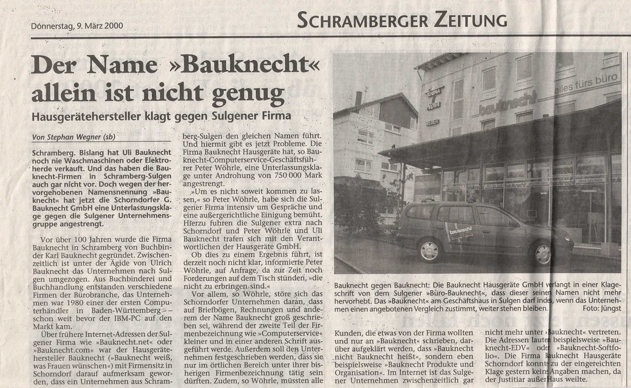 Die Bauknecht Hausgeräte GmbH verlangte in einer Unterlassungsklage, dass der Name Bauknecht nicht mehr hervorgehoben werden darf. Dadurch entstehen die Umfirmierungen in “Bauknecht jetoffice” für die Sparte “Bürobedarf und Büromöbel” und “Bauknecht softfolio” für die damalige Bauknecht Computerservice.
